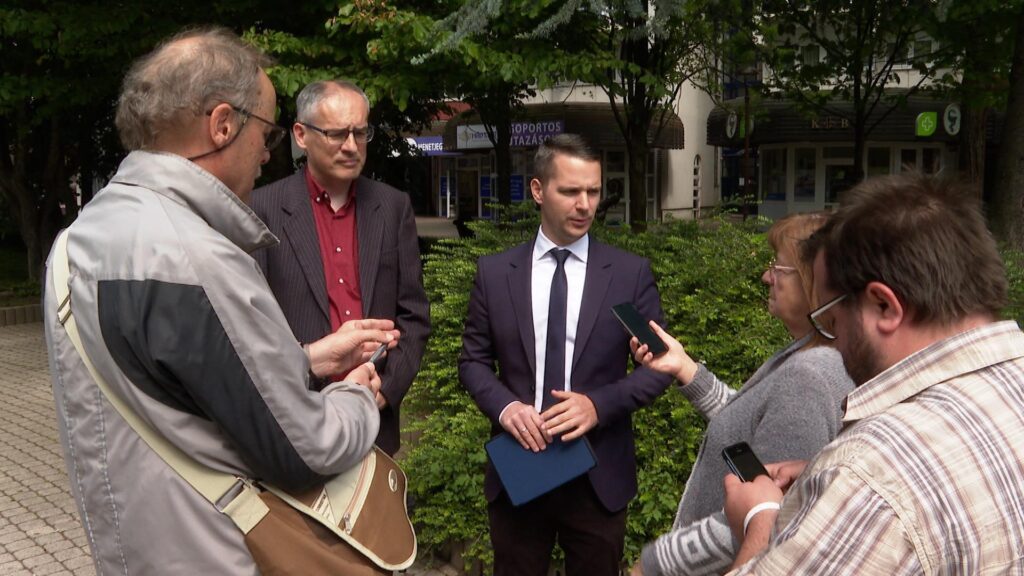 Keresztes Csaba polgármesterjelölt és Békési Tamás képviselőjelölt, alpolgármester-jelölt 2024. május 9-én a zalaegerszegi Európa téren két témában tartott sajtótájékoztatót.